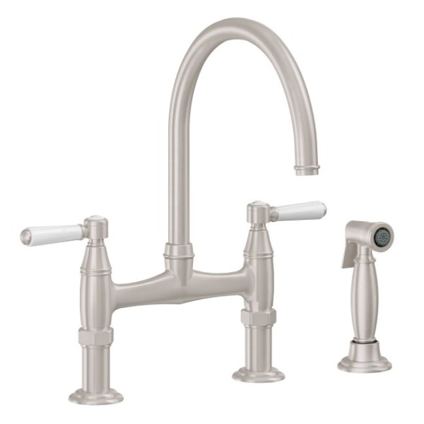 A utilitarian design that harks back to the early days of indoor plumbing, bridge style faucets have been around for over a hundred years. They’re a beautiful match with farmhouse style sinks and are typically found within traditional spaces.
